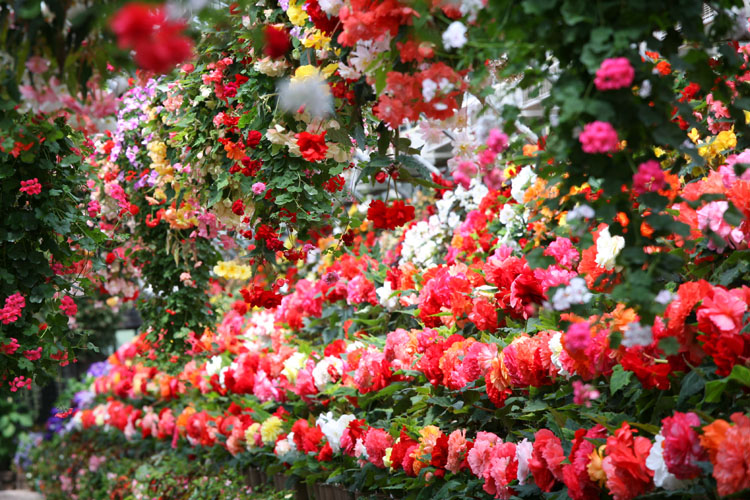 | 極大輪のスタンドベゴニアは当園で交配したオリジナルの新花で、大きさ世界一を目指して改良しています。ここで生まれた球根ベゴニアを中心に、ベゴニア類1300品種、フクシア750品種などが皆様をお出迎えいたします。 | |||||||