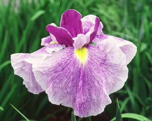 相生里 あいおいざと AIOIZATO 江戸系 紫砂子に白覆輪ぼかし、鉾は紫の三英。花径は15cm程度の中輪。