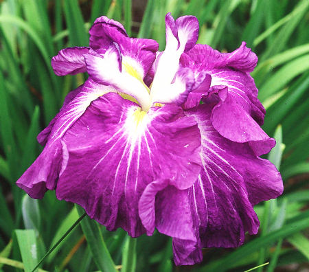 暁の海 あかつきのうみ AKATSUKI NO UMI 肥後系 紅を含む藤紫に白太筋、六英極大輪の立派な花容の花 1958年頃、平尾秀一氏の作