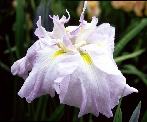 明化粧 あけげしょう AKEGESHO 肥後系 中生 ほんのり紅を帯びた白の八重咲き。花径はおよそ18cm程度の大輪 1958年、村田英雄氏作出