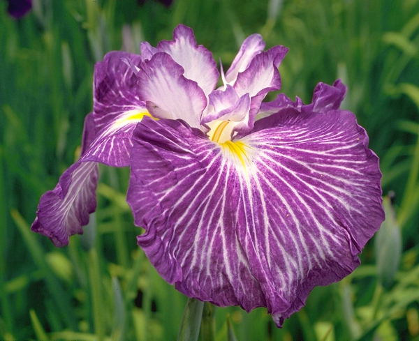 熊本花菖蒲 中生 紅紫に白筋の入る六英花。花径はおよそ18cm程度の大輪。