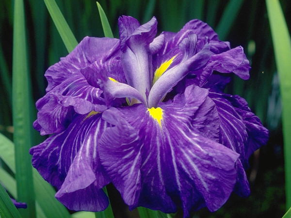肥後系 藍砂子地に白筋の入る六英花。花径は18cmを超える大輪から極大輪。