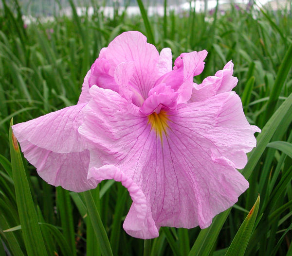 紅 霞 べにがすみ BENI GASUMI 江戸系 中生 濃いピンクの三英花。花径はおよそ15cmほどの中輪。 草丈は60cmほど。性質は普通。繁殖は良さそう。 「紅 桜」の後代で花形もよく整い、「千姫桜」を少し単純にしたような美しい花。 光田系の性質を丈夫にするという考えで交配したものの中から出たもの。 2003年加茂花菖蒲園作出