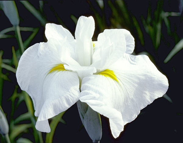 肥後系 晩生 純白の三英花。花径はおよそ15cmを越える大輪。