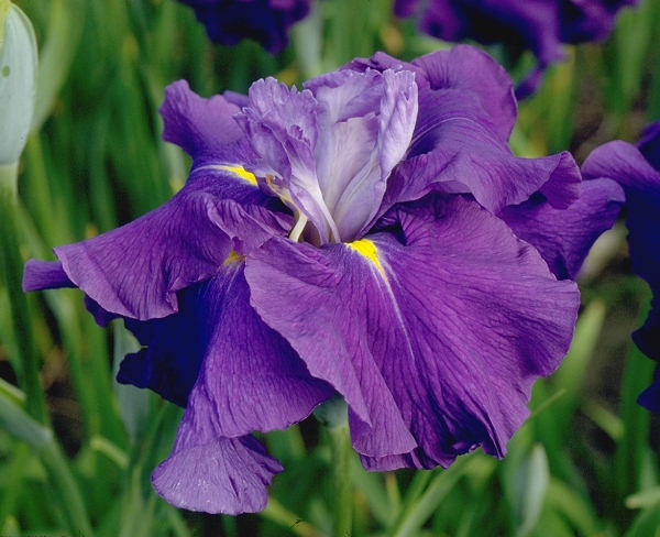 肥後系 中 紫の六英花。芯が崩れ何本も上がる。花径は18cm程度の大輪。