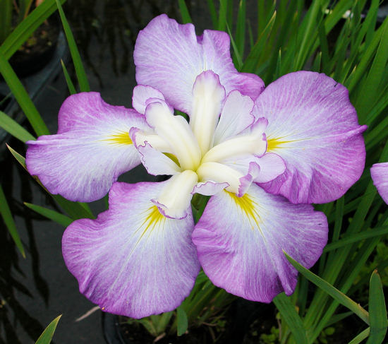 江戸系 中生 薄紅色に底白の五英花。花径はおよそ13cmほどの中輪。
