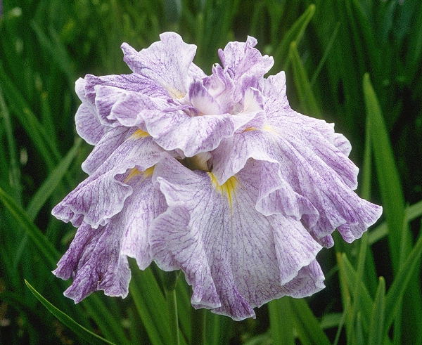 砂子はなかった。光田氏は、格調高い肥後花菖蒲の花形をより豪華絢爛に発達させ、加えてピンク系や濃桃赤系、