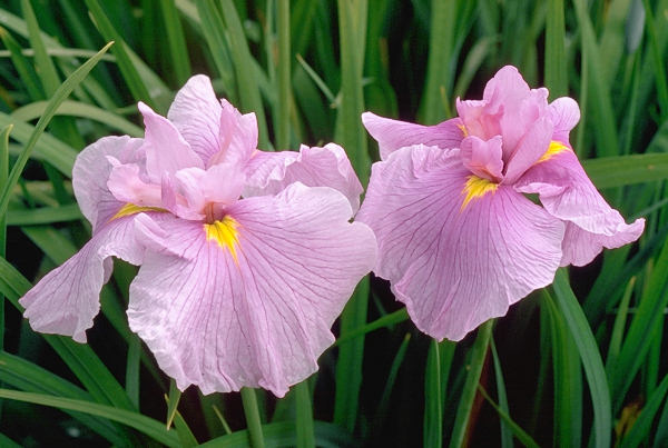 江戸系 中生 ピンクの三英花。花径はおよそ13cm程度の中輪。