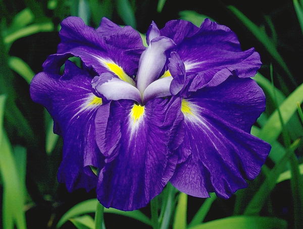 碧 涛 へきとう HEKITHO 肥後系 晩生 コバルトがかるルリ紺紫の六英花。花径はおよそ18cm程度の大輪。 草丈は低く、60cm前後。性質、繁殖は普通。 よく普及している肥後系の紺紫色の品種である。写真が悪く、ルリ紺だが、碧鳳系と比べると 赤紫色味が感じられる。