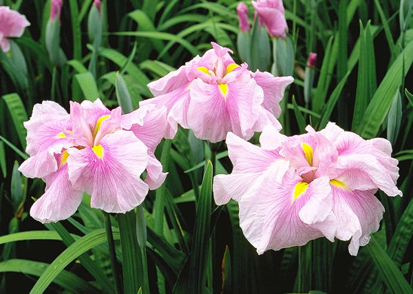 肥後系 早生 ピンクの六英花。花径は約16cmを越す中輪から大輪。草丈はやや低く60cm内外。