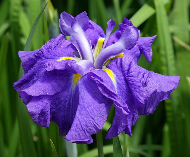 北 洋 ほくよう HOKU YOU 肥後系 極早生 青紫の平咲き六英花。花径はおよそ15cmを越す大輪。 草丈はやや低く60cm程度。性質、繁殖は良好。 早咲きでは大きな花を付け、丈夫で繁殖も良い品種。ただ、花菖蒲園用としては、草丈がもう少し ほしい品種である。 1996年、加茂花菖蒲園作