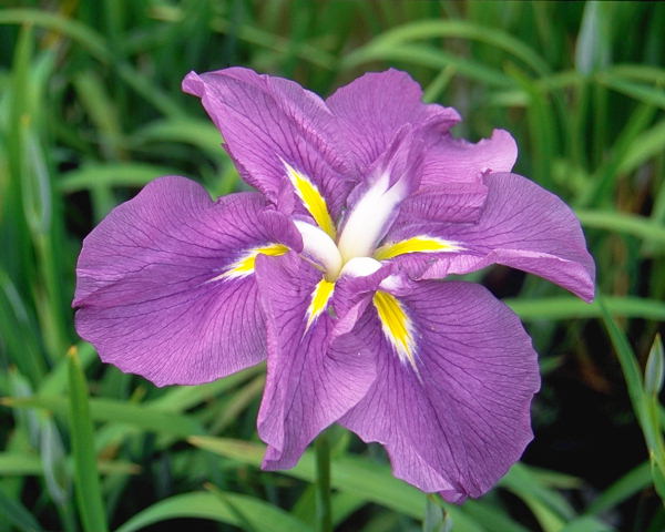 江戸系 中生 やや薄い小豆色の平咲き。花径は15cm程度の平咲きの中輪。