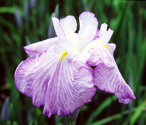 伊勢系 薄紅砂子に白筋、芯の白い三英垂れ咲き中輪