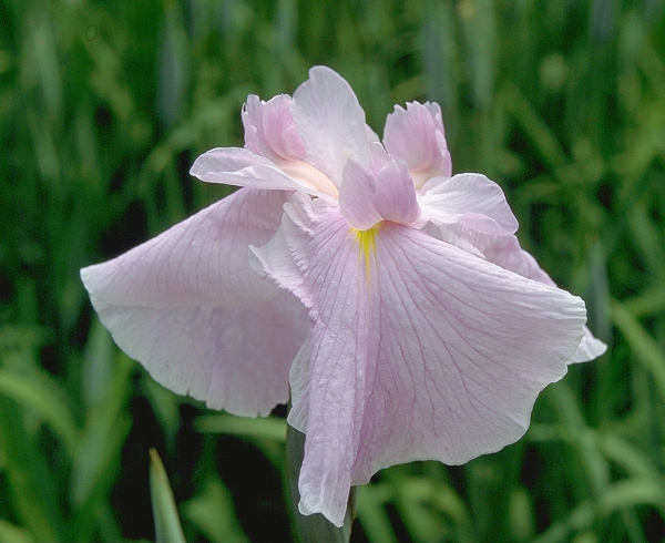 上総乙女 かずさおとめ KAZUSA OTOME 肥後系 中生 美しいピンクの垂れ咲き三英花。花径はおよそ15cmを越す大輪。 草丈は70cm程度。性質、繁殖は普通。 肥後系と伊勢系の交配種で、肥後系とはなっているが、垂れ咲きの花形や、蜘蛛手など、伊勢系 の特徴も顕れている。花弁の質がやや柔らかい。 「品種総目録」には牧野善作氏が、1968年に作出した品種ということになっているが、平尾先生 が牧野氏に花を持たせたものと思われる。