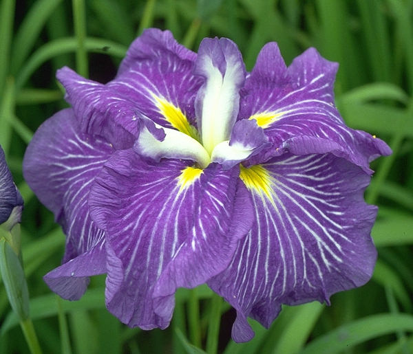 肥後系 中生 「品種総目録」には「水色地に・・・」とあるが、実際は明るい青がかる
