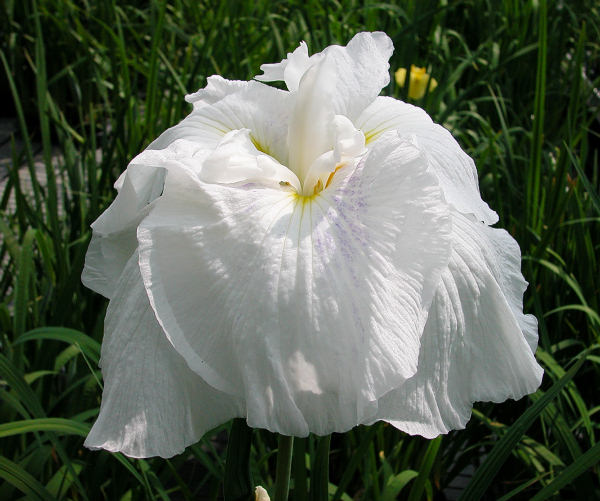 雲間不二 くもまふじ KUMOMA FUJI 肥後系 白に弁元わずかに藍絣が入る六英花。花径はおよそ18cm程の大輪。 草丈は70cmを越える。性質、繁殖は普通。 衆芳園の西田信常翁が1930年に作出した古い品種。