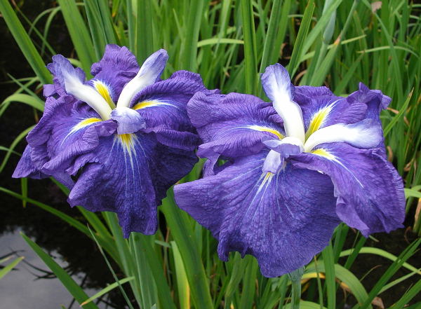 江戸系 中生 明るい紺青色の六英花。芯が白くよく目立つ。花径はおよそ15cm程度の中輪。