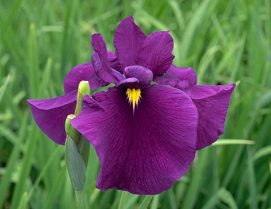 江戸系 早生 ビロード紅紫の三英花。花径はおよそ13cm程度の中輪。