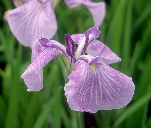 長井薄紅 ながいうすべに NAGAI USUBENI 長井系 早生 藤ががる薄紅に白筋が淡く入る三英花。花径は6cm程度の小輪。 長井市で、休耕田に栽培されている長井古種の実生の中から選んで97年頃に名称を付けたもの。 やさしい花色で可愛らしい花。