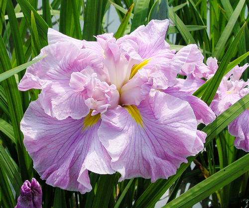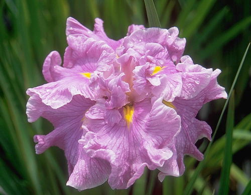 肥後系 早中生 ややくすんだ藤色を帯びるピンクで咲き始めは濃いピンクの六英咲き。花径は