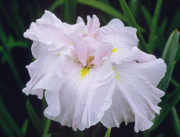 肥後系 中早生 ピンクの波状弁の六英花。花径はおよそ18cm程度の大輪。