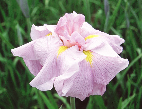 桜 暦 さくらごよみ SAKURAGOYOMI 肥後系 早生 淡いピンクの六英花。花径はおよそ15cmを越す中大輪。 草丈は100cm前後に伸びる。性質は普通、繁殖はやや少ない。 後藤昭三氏の作で作出年代は不明。しかし、早咲きにしては草丈が伸び花も大きく、 しかもピンクの花をつけるので、この特徴を生かしてさらに濃く大輪なピンクの作出 をねらうには良い親になると思っている。