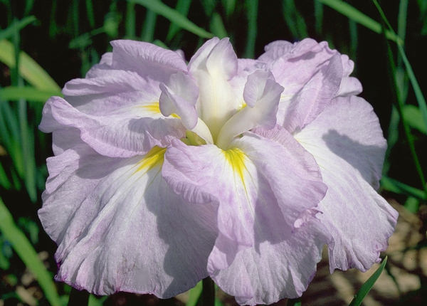 桜の春 さくらのはる SAKURA NO HARU 肥後系 中生 やや藤色を含む桜色六英。花径はおよそ18cm程度の大輪。 1958年、平尾秀一氏作。熊本花菖蒲の「東雲」の後代。 「霞の衣」、「大和姫」などによく似ている。