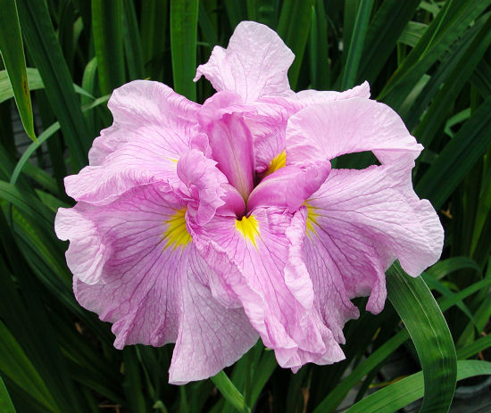 桜の舞 さくらのまい SAKURA NO MAI 江戸系 中生 濃いピンクの六英花。花径はおよそ15cmほどの中輪。 草丈は60cmほど。性質は普通。繁殖は良さそう。 「紅 桜」の後代で花形もよく整う美しい花。光田系の性質を丈夫にするという考えで 交配したものの中から出たもの。 2003年加茂花菖蒲園作出