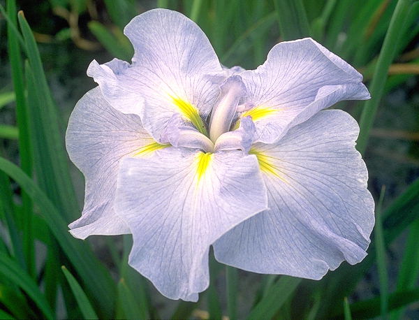 千里の霞 せんりのかすみ SENRI NO KASUMI 江戸系 中晩 水色の平咲き六英花。花径はおよそ16cm前後の中大輪。 草丈は70cm前後。性質は普通。繁殖はやや少なめ。 これも写真が悪いが、平咲きの澄んだ水色で美しい花である。 1993年、加茂花菖蒲園作。