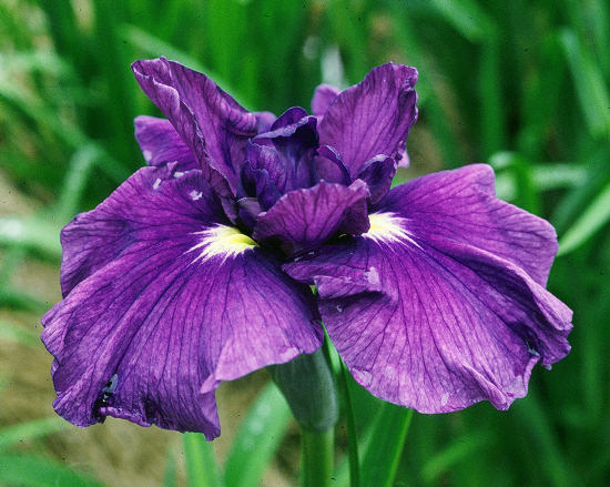江戸系 早生 紺紫の三英花。花径はおよそ14cm前後の中輪。