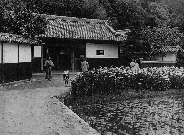 現在の花菖蒲園にあたる場所は昔は田圃であり、長屋門の前だけ、江戸時代の末頃から厄除けの意味もあって花菖蒲