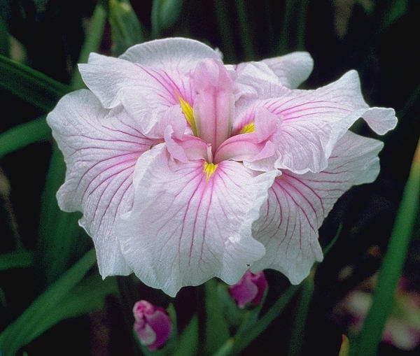 春窓の夢 しゅんそうのゆめ SYUNSOH NO YUME 江戸系 中生 桜色に桃色の脈が入る六英花。花径はおよそ15cm程度の中輪。 草丈はおよそ60cmほど。性質、繁殖は普通。 1980年、加茂花菖蒲園作