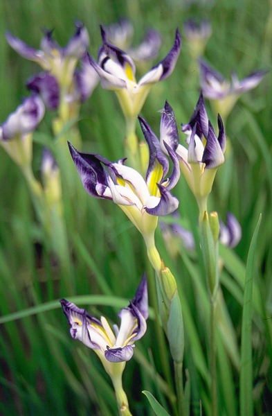 たいへん珍しい花形で長井古種好きの方から要望の多い品種。爪咲きでとても可愛らしいが、花菖蒲園に植栽すると、開花しているのに萎んでいるように見えてしまう。