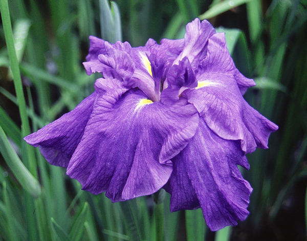 十和田湖 とわだこ TOWADA KO 肥後系 中早生 光田氏の品種リストには「ごく薄い水紫無地」とあるが、実際に見た感じは、やや青がかる 濃い藤色といった感じだった。直径は、写真の花は15cm程度だったが、作によってはもっと大きく咲くと思う。 草丈は低く50cm程度。性質、繁殖は悪い。 光田義男氏が、1988年に作出した品種。
