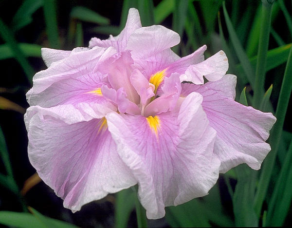 江戸系 早生 ピンクの平咲き六英。花径はおよそ15cm程度の中輪。