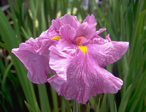夢吹雪 ゆめふぶき YUME FUBUKI 肥後系 濃桃赤色に淡色の絞りの入る三英。花径はおよそ18cm程度の大輪。 芯が立派でたいへん豪華な感じの花。鉢栽培向き。性質は弱い。 1995年、光田義男氏作