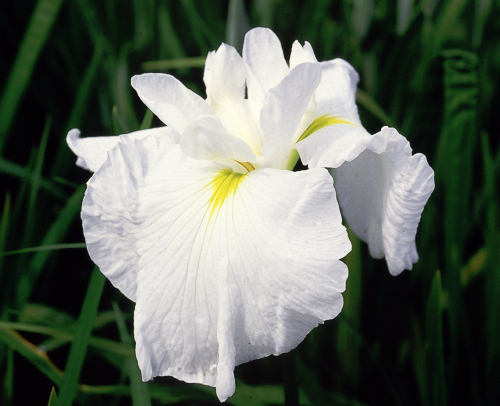 肥後系 純白三英大輪 早咲きの肥後系で大きな花を付ける